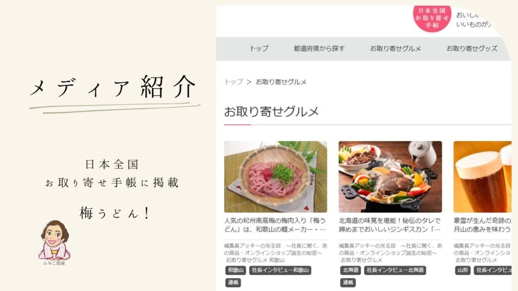 この度、梅うどんを取り上げて頂きましたのは、日本全国お取り寄せ手帳さんはこちらになります!