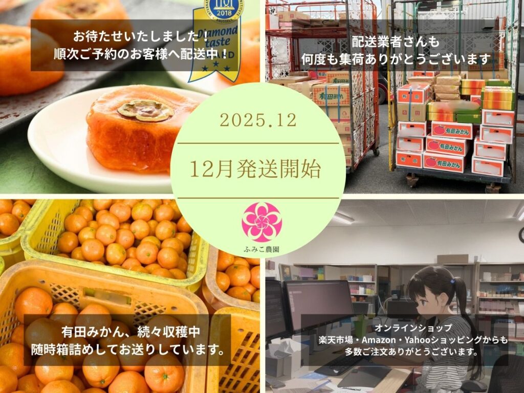 既に11月にみかんやあんぽ柿などをご注文頂いた方には、大変お待たせいたしました。準備ができた商品から順次発送しておりますので、いましばらくお待ちください!